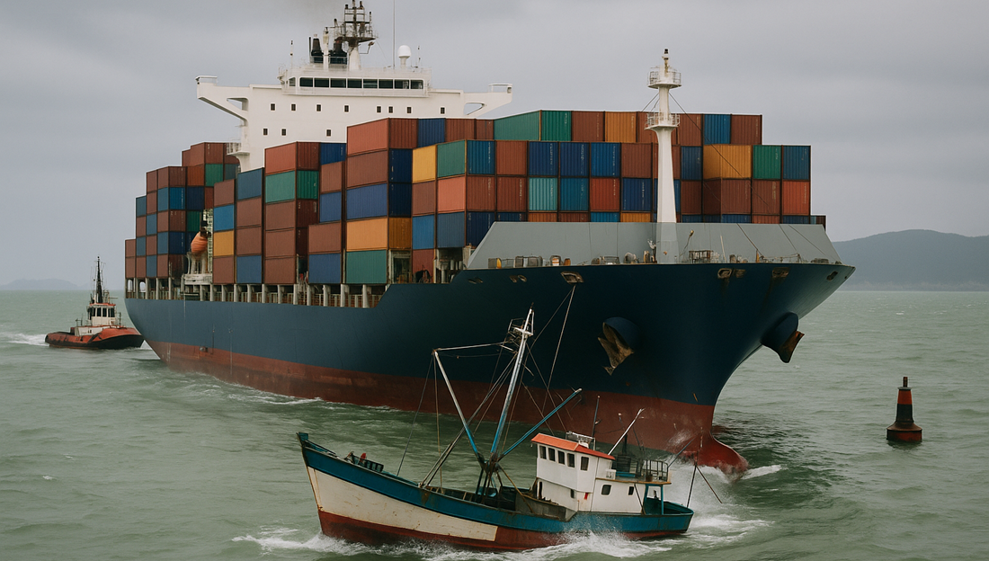 Container ship collides with fishing vessel during maneuver at Port of Imbituba