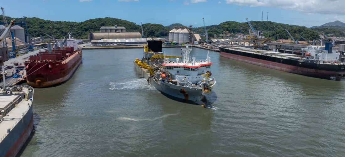 The dredging will enable the docking of vessels up to 366 meters long, making Babitonga Bay the first port complex in Brazil capable of handling ships of this size at full load.