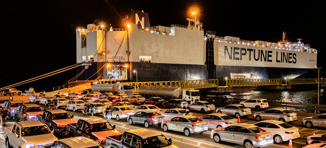 The Neptune Hellas discharged 355 cars and loaded another 201 vehicles for export. Operations were handled by Ascensus Gestão e Participações, responsible for one of the Port’s regulated areas (PAR), covering 74,100 m² with a static capacity for 4,000 vehicles.