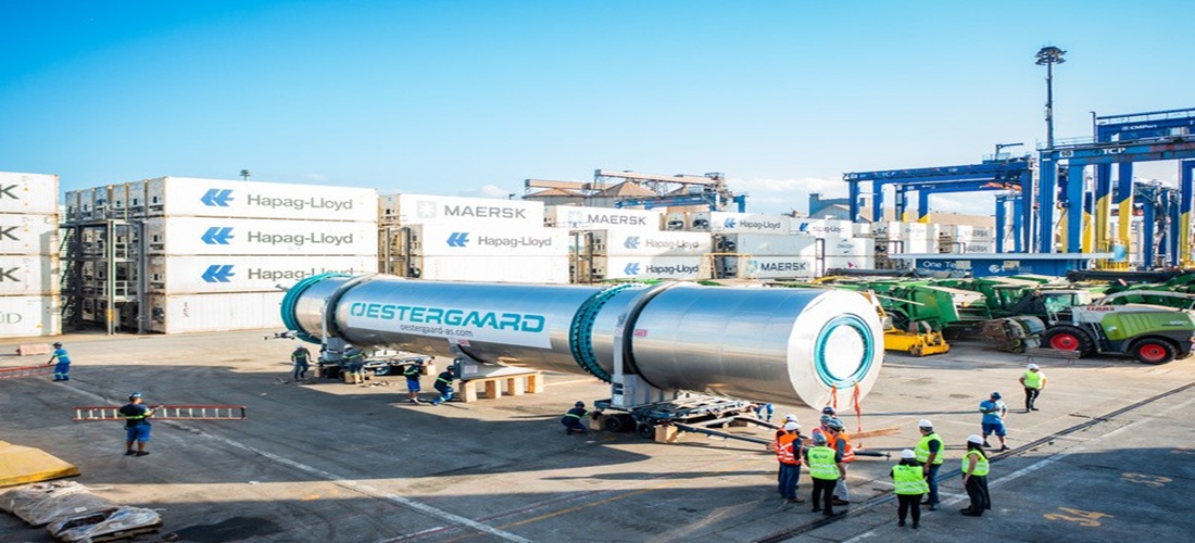 Once at TCP, the dryer was hoisted by two mobile harbor cranes (MHC), each capable of lifting 100 tons at a height of 40 meters, and positioned onto two MPB modules. “The MPB is highly versatile and easier to maneuver than other trailer models because its module axles are mobile rather than fixed, as in conventional trailers. However, the hoisting and positioning operation is extremely delicate, requiring a highly qualified team and suitable equipment to ensure full precision and protect the customer’s asset,” explained Fabio Mattos, TCP’s Logistics Operations Manager.