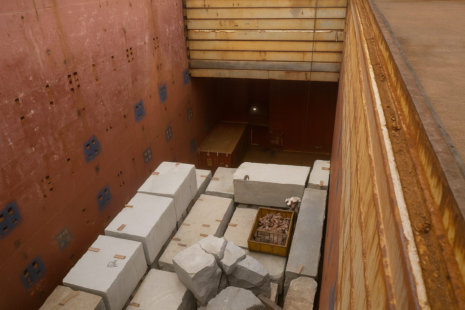 Bloco de rocha despenca de guindaste e cai em porão de navio no Porto de Vitória