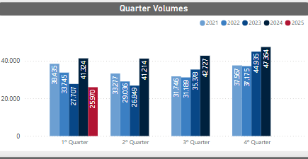 O preço médio do produto também subiu de forma significativa. Em março de 2025, o valor negociado foi de US$ 12.745,00 por tonelada, o que equivale a uma valorização de 52,8% em comparação ao preço médio de US$ 8.341,70 registrado no mesmo mês de 2024.