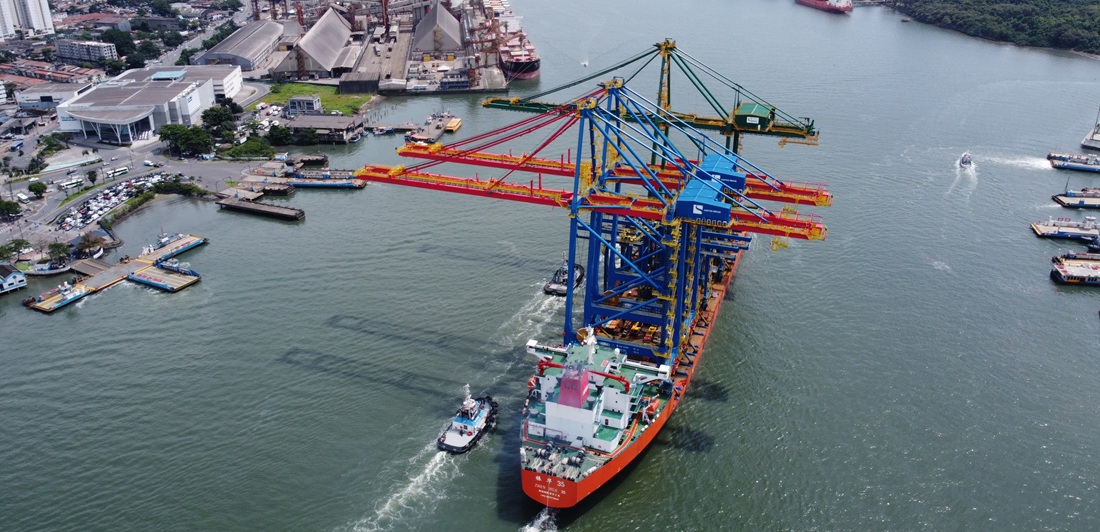 Dois portêineres (guindastes de cais) e oito RGTs (guindastes de pátio) elétricos adquiridos pela Santos Brasil deixaram a China, rumo ao Tecon Santos, a bordo do navio Zhen Hua 28. Os equipamentos da empresa chinesa ZPMC fazem parte do projeto de ampliação, modernização e descarbonização do terminal e têm investimentos da ordem de R$ 300 milhões.