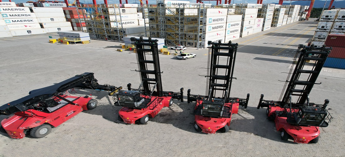 O Porto Itapoá reafirma seu compromisso com a sustentabilidade ao adquirir três empilhadeiras de vazios totalmente elétricas e uma empilhadeira tipo reach stacker elétrica, tornando-se o primeiro terminal portuário brasileiro a operar esse tipo de equipamento.