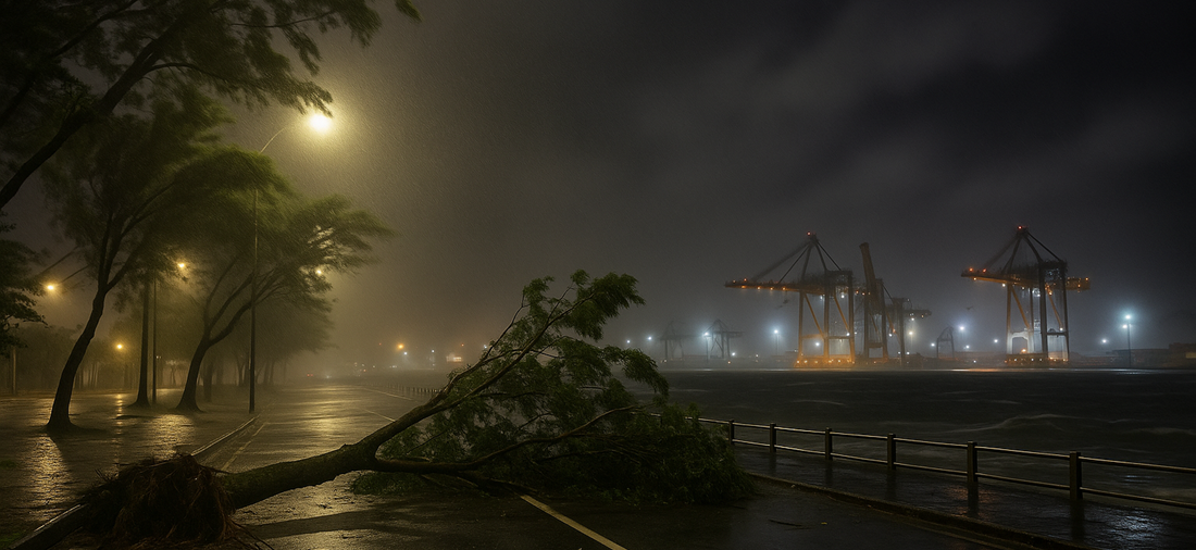 O porto de Santos precisou ser fechado devido ao vendaval. As operações foram paralisadas por volta das 23h50 de sábado (23) e o porto só reabriu na madrugada de domingo por volta das 03h20.